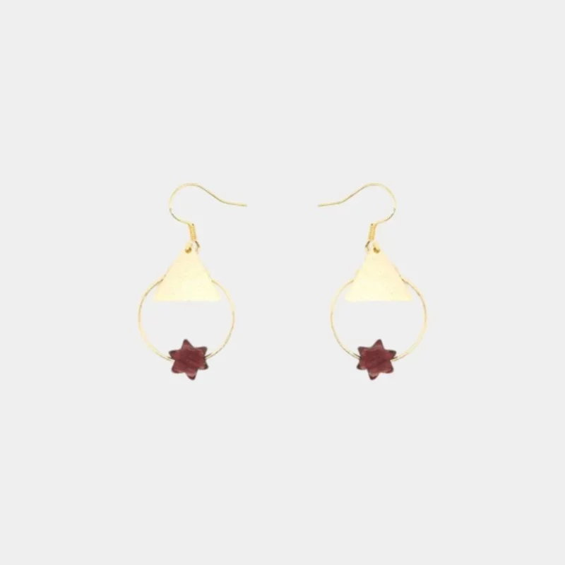 Boucle d’oreille étoile bois amarante doré – Lise