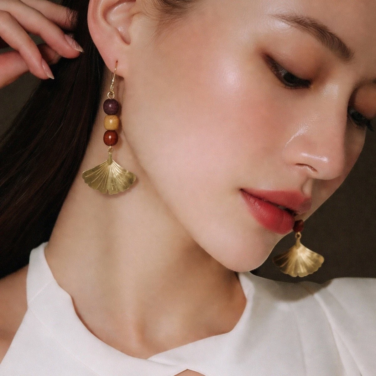 Les boucles d’oreilles dorées NEL sont un savant mélange de finesse, d’élégance et de robustesse. Ornées de trois perles rondes en essences de bois et rehaussées par une feuille GINKGO majestueuse, elles marient parfaitement les tendances de la mode et la délicatesse de la nature. Leur choix de bois multicolore ajoutent un charme intemporel à l’ensemble, accentuant leur caractère unique et sophistiqué.