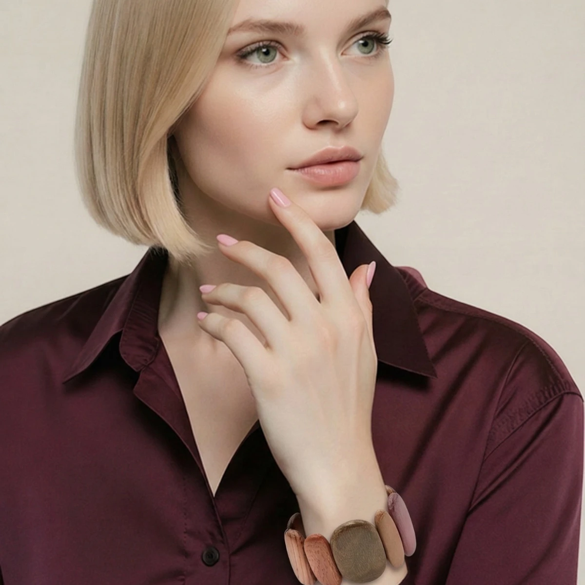 Le bracelet bois multicolore Karina est conçu pour s’adapter à toutes vos tenues. Que ce soit pour une journée décontractée ou une soirée élégante, il ajoute une touche de sophistication naturelle. Ce bijou est également idéal comme cadeau unique pour celles qui apprécient l’authenticité et la durabilité.