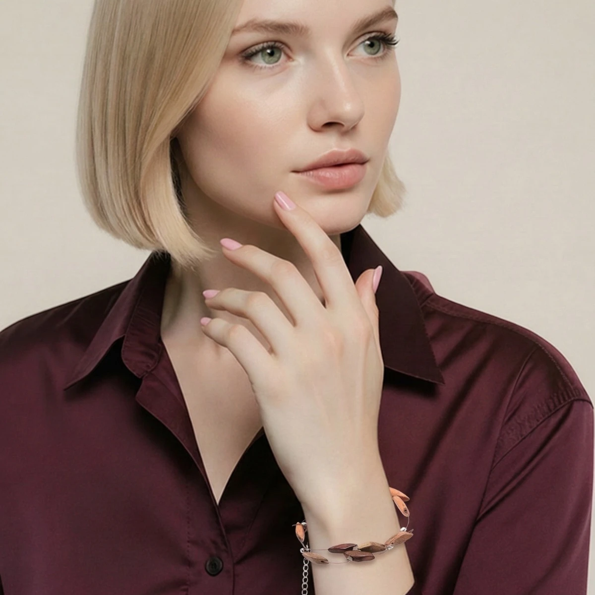De la douceur et légèreté à votre poignet. Elégant bracelet Zaia multibois très fin doté de perles losanges et de perles argentées