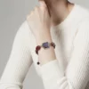 Le bleu tacheté avec des nuances de mauve de la pierre associé à l’essence d’amarante lui procure un charme fou à ce bracelet Louli by Essenciel.