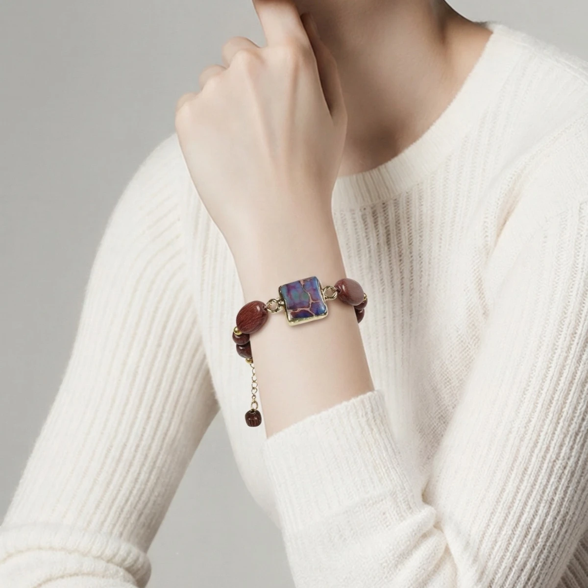 Bracelet Louli en bois d’amarante et de sa pierre Jaspe Impérial