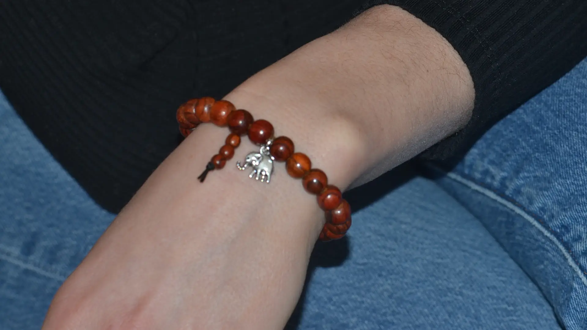 - Design Unique : L’alliance de perles en bois et d’un médaillon symbolique crée un style distinctif.