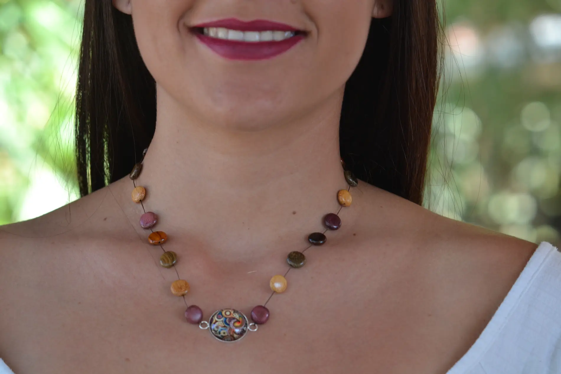 Laissez-vous surprendre par la nouvelle collection de colliers en bois et cabochons en verre de la marque Essenciel.