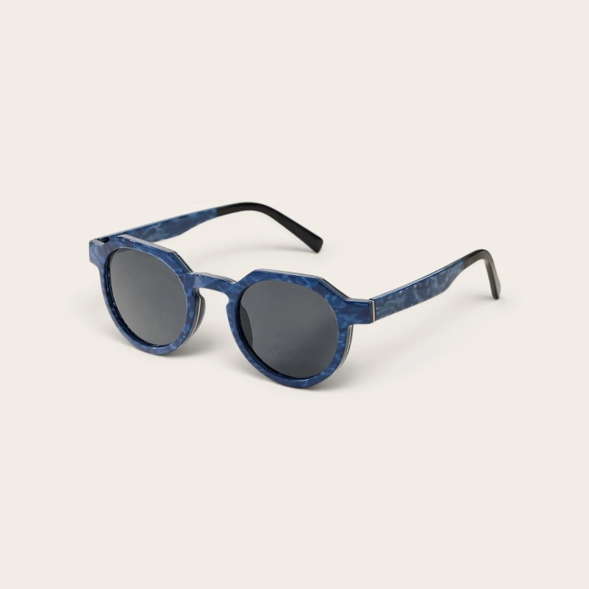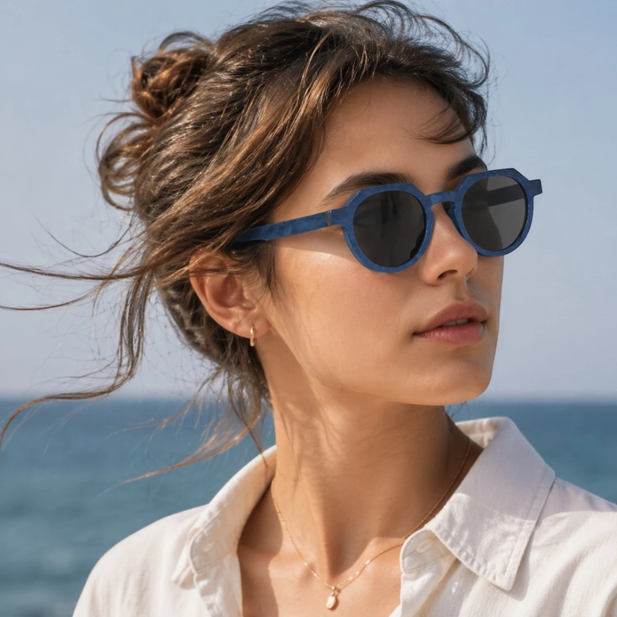 Découvrez les lunettes bleue polarisées Santos rétro Céline, une paire solaire artisanale uniques fabriquées en bois skateboard