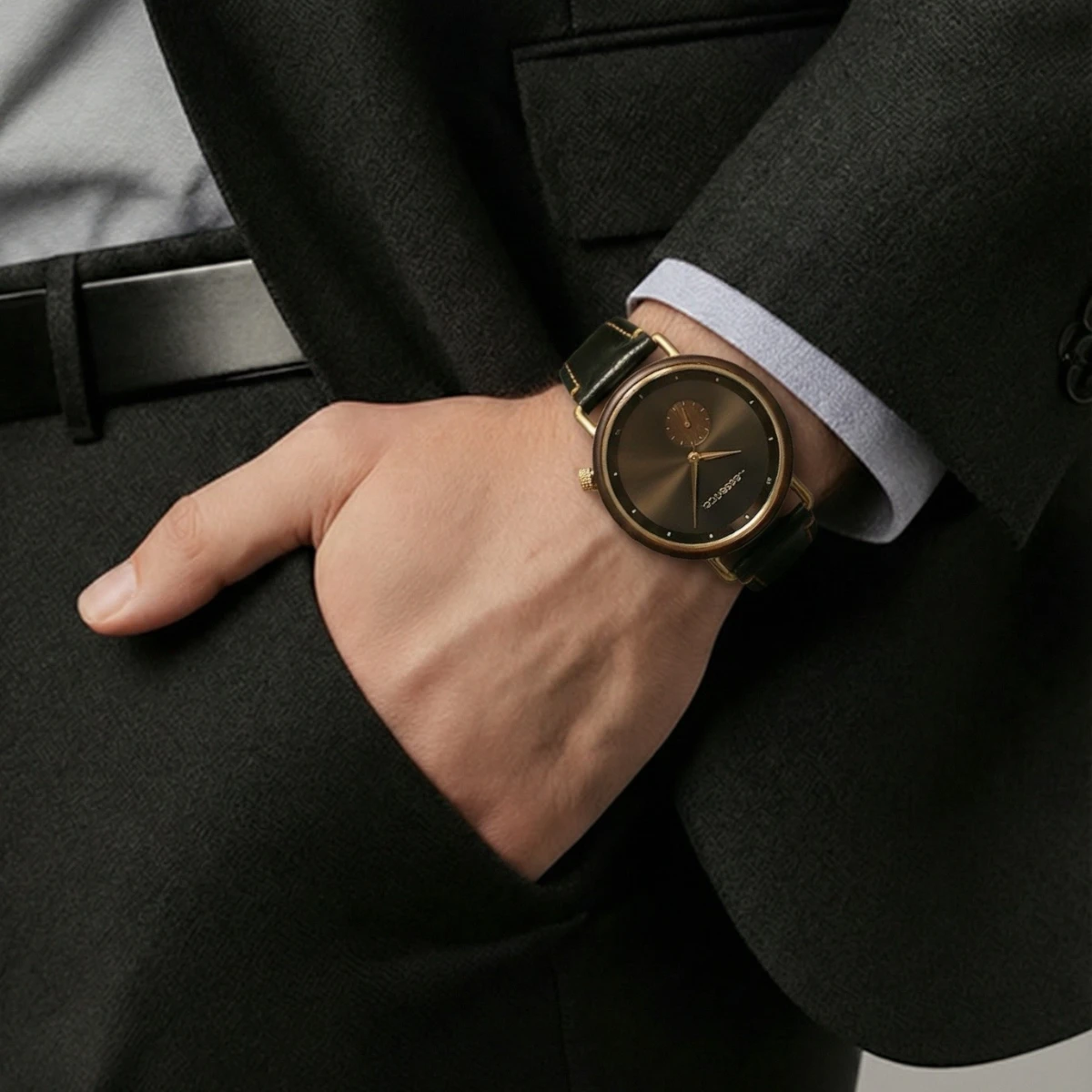 Montre cuir et bois ébène Quantum – L’élégance au masculin