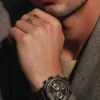 Son cadran noir métallisé présente une lecture claire et structurée grâce aux chiffres arabes bien visibles. Il accueille trois compteurs pour la fonction chronomètre, ainsi qu’un discret dateur. L’ensemble est protégé par un verre en cristal résistant et élégant, offrant une lisibilité parfaite en toutes circonstances.