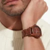 Le bracelet en bois de palissandre, renforcé par deux fines plaques métalliques aux extrémités, assure un confort optimal et une durabilité accrue. Deux maillons supplémentaires vous permettent d’obtenir un ajustement parfait. De plus, pour ceux qui aiment varier les styles, le bracelet s’adapte aux bracelets en cuir.